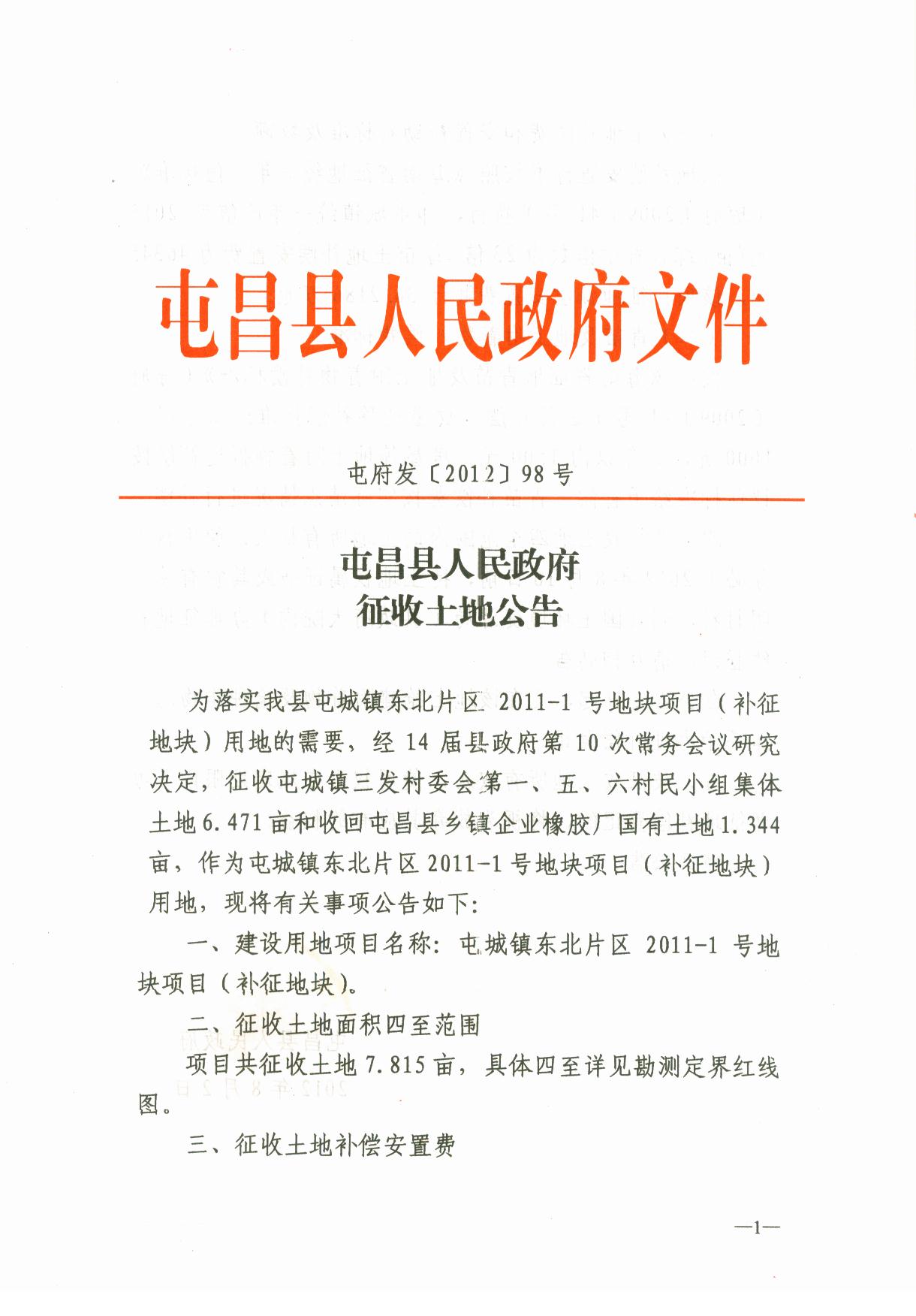 屯城镇东北片区2011-1号地块项目(补征地块)